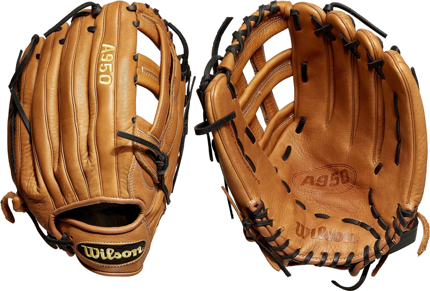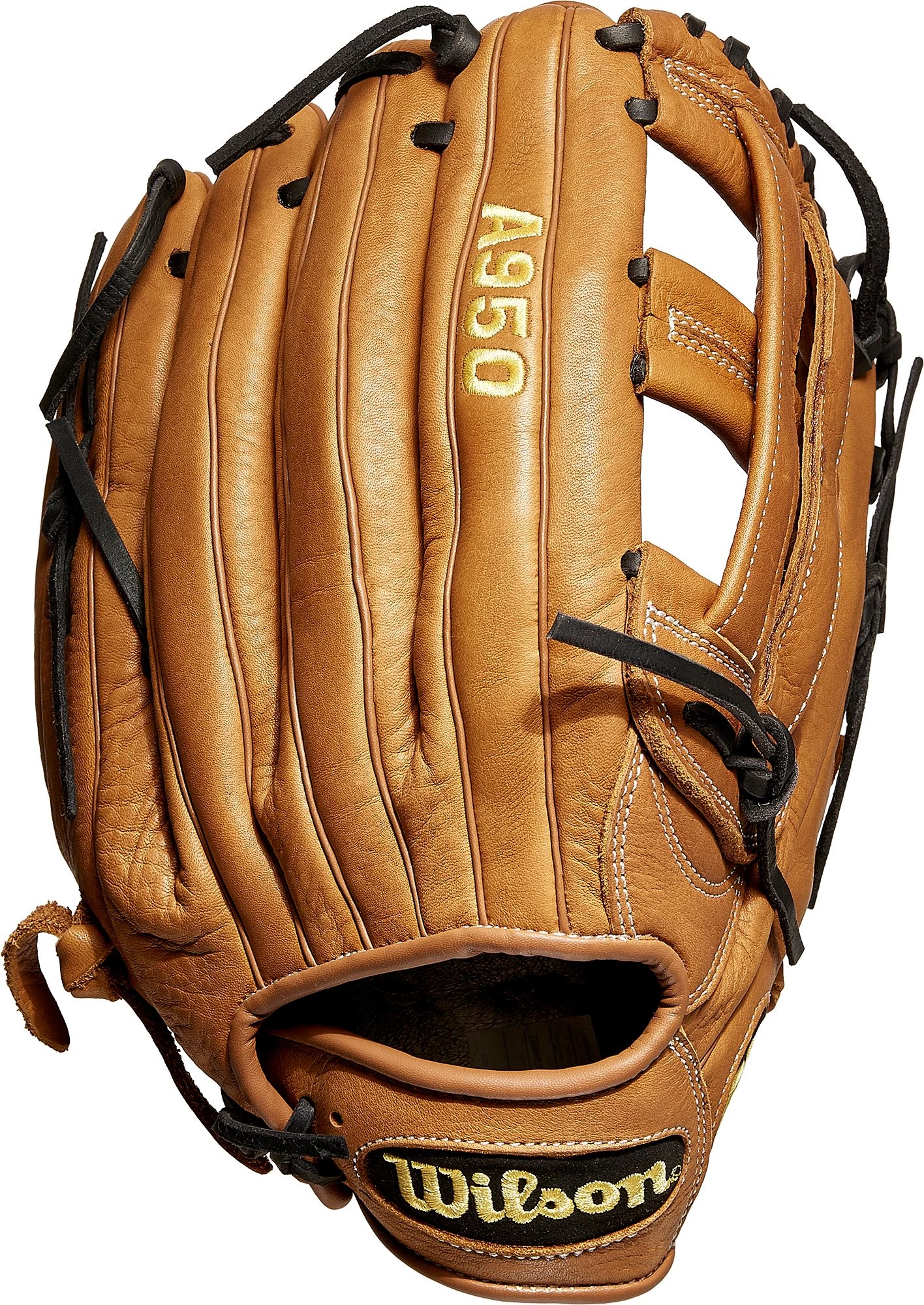 Old-school construction with a game-ready feel, the 2020 Wilson® A950® Series Gloves feature a full grain leather build with maximum pocket stability that conforms to the hand. This 12.75’’ model is a common staple for the everyday outfielder, as its H-Web and deep pocket allow players to track high flying balls through the webbing and make a secure grab.